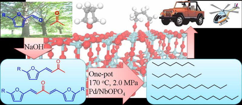 生物质催化转化制备液态烷烃通常经过多步骤,在高温、高压下进行,既会导致C-C键的断裂,产生低值的甲烷和CO2,使液态烷烃的收率降低,又会导致催化剂的失活。该成果创新性地构建了多功能的Pd/NbOPO4催化剂,使得呋喃类化合物的衍生物(来源于生物质)在温和的条件下直接催化转化为液态烷烃,液态烷烃收率高(90%),催化剂寿命长(250小时)。在该多功能Pd/NbOPO4催化剂中,NbOx起到了决定性的作用,其既作为酸中心发挥脱水的作用,同时作为强的亲氧物种,具有断C-O键的作用,使得反应在温和条件下进行,这是首次对NbOx断C-O键的作用进行实验和理论研究。该成果对于认识Nb类材料的性质与作用,同时对于生物质及其衍生物催化脱氧加氢制备生物汽油、生物航煤和生物柴油具有特别重要的意义。