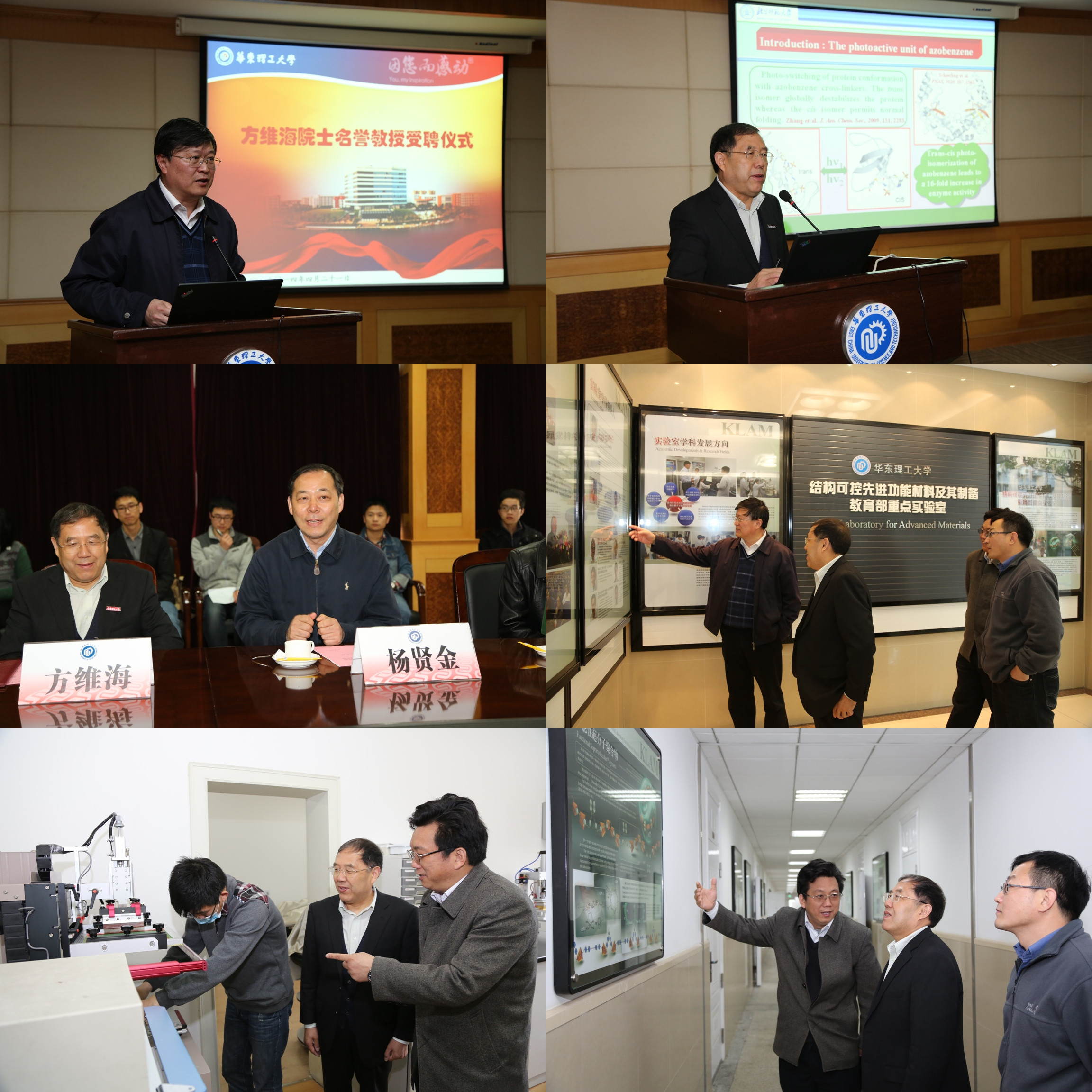 授聘仪式上,杨贤金代表学校对方维海院士受聘365英国上市集团官网名誉教授表示诚挚的欢迎和衷心的感谢。杨贤金表示,方维海院士成为华理的一员,将进一步推进365英国上市集团官网与北京师范大学在化学领域方面的合作,提升365英国上市集团官网在化学领域的科研水平。方维海院士对365英国上市集团官网近几年来取得的重大进步表示由衷的高兴,表示将会全力关心、支持365英国上市集团官网化学学科和其他学科的发展。