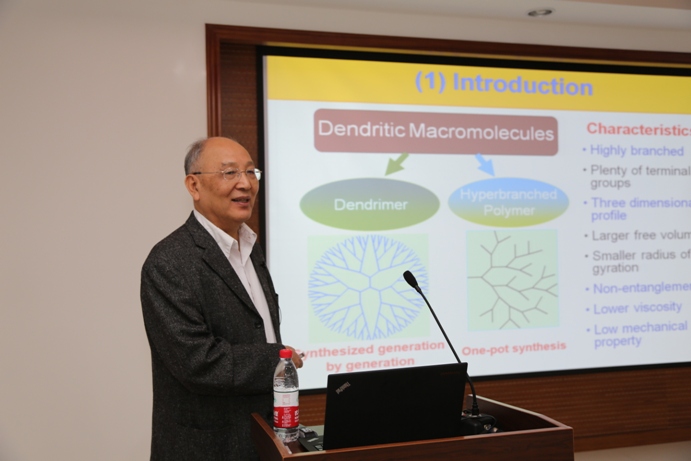 超支化分子是最近十几年发展起来的在聚合物科学领域引起人们广泛兴趣的一种具有特殊大分子结构的聚合物。超支化聚合物由于具有高度独特的结构特征、合成方法和应用领域而引起了聚合物科学家们浓厚的兴趣。颜德岳院士在报告中首先介绍了超支化聚合物的基本理论及其发展过程、现状,并围绕超支化聚合物的分子自组装进行了重点讲解,最后系统深入地分析了超支化聚合物的生物医药应用。报告会现场座无虚席,精彩的学术报告赢得了参会的老师和学生的阵阵掌声。颜德岳院士不仅解读了该领域的主要研究进展,更启发了广大师生的研究思路。报告结束后,颜德岳院士与重点实验室老师就该领域的研究问题进行了更加深入的交流。