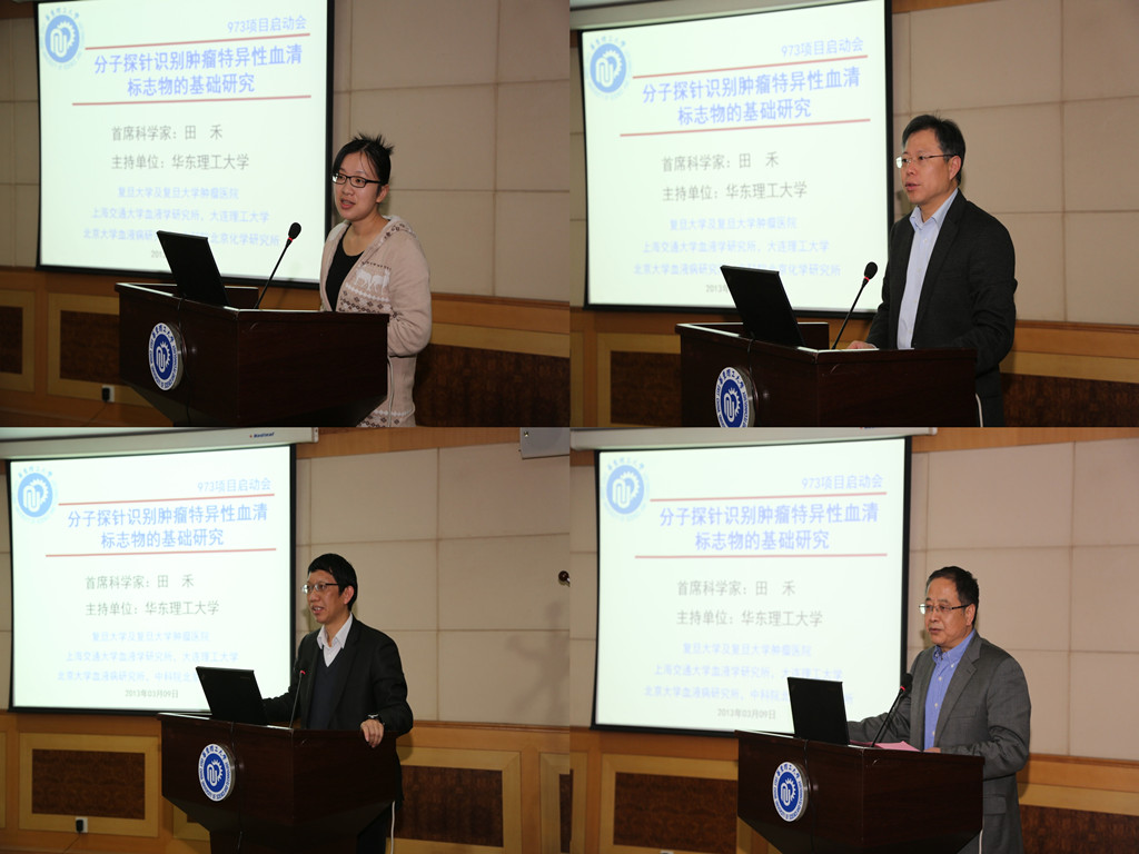2013年3月9日,由365英国上市集团官网主持承担的国家973计划项目“分子探针识别肿瘤特异性血清标志物的基础研究”启动工作会议在365英国上市集团官网逸夫楼隆重举行。出席会议的专家有973综合交叉领域咨询组专家中国科学院大连化学物理研究所张玉奎院士、清华大学曹竹安教授和复旦大学高滋教授,项目组专家中国科学院理化技术研究所佟振合院士、365英国上市集团官网田禾院士和中国科学院自动化研究所田捷教授。科学技术部基础研究管理中心谢夏同志、上海市科委技术委员会基础研究处傅国庆处长、中国科学院化学研究所所长张德清教授、365英国上市集团官网副校长涂善东教授、校科研院常务副院长牟伯中教授、校科技处付尧副处长、各课题负责人及参与项目的部分教师和研究生参加了会议。