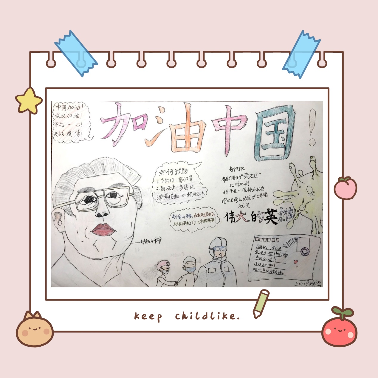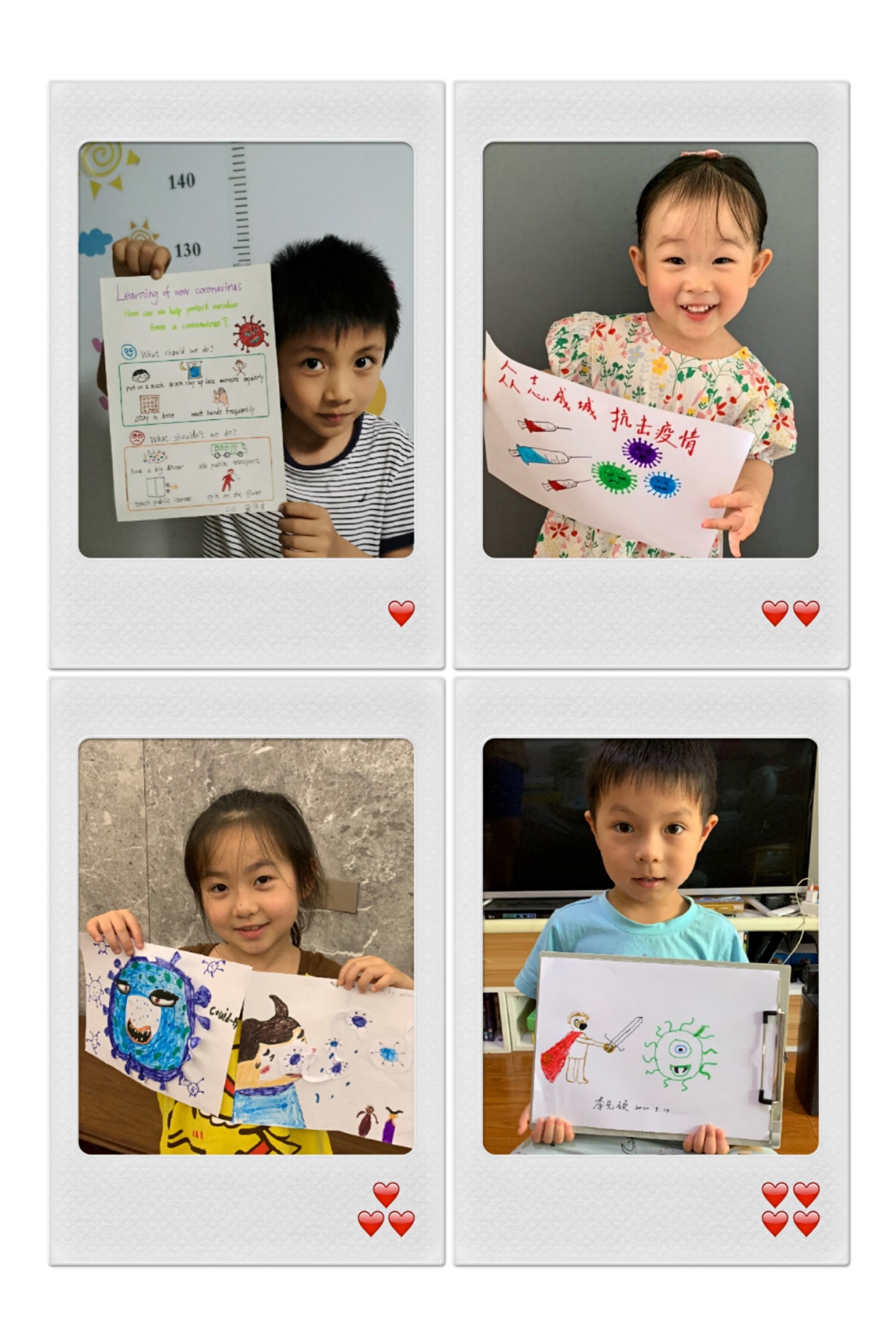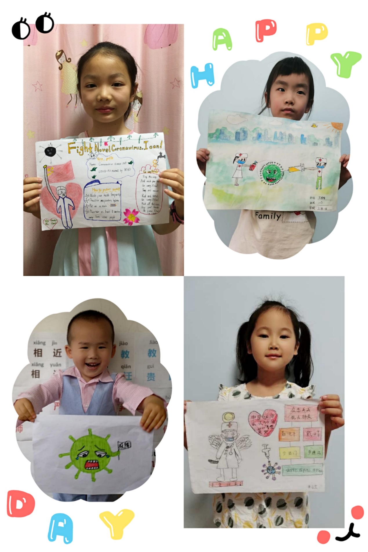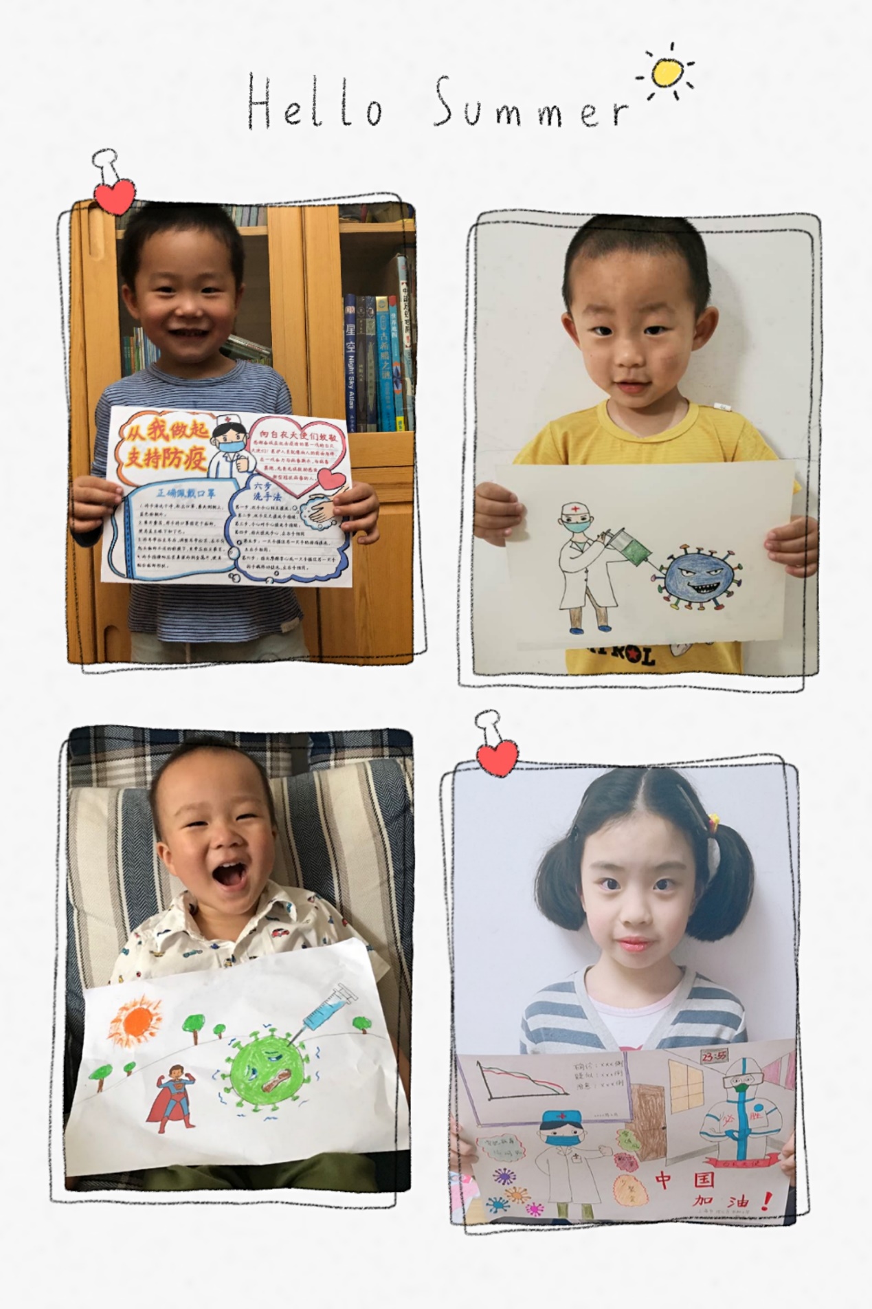 该活动受到小朋友们的热情参与,自活动开展以来,我们共收到近100份绘画和手抄报作品。作品主要围绕"打赢疫情防控战"主题,有对英勇奋战在抗疫一线的医务工作者讴歌赞美;也有对戴口罩、勤洗手、常通风等防疫小常识进行普及;或为全世界、为中国防疫抗疫呐喊加油等……