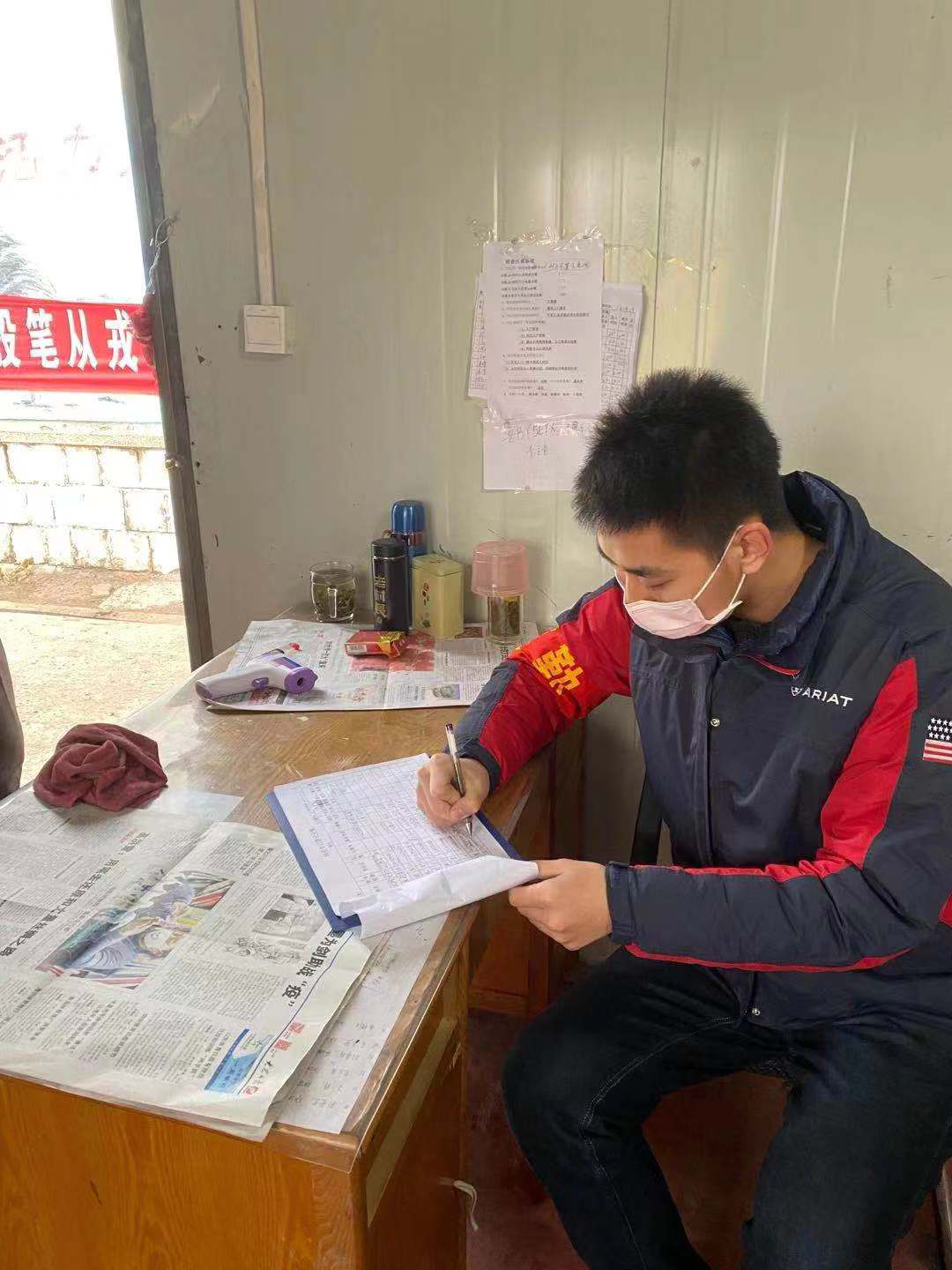 疫情暴发以来,我时刻关注疫情,作为一名党员我时刻准备着贡献自己的力量。当得知村里需要志愿者的时候,我报名成为了社区卡点的一份子。因为社区外地租客较多,返工、出行和生活物资的进出情况相对复杂,所以卡点的工作就显得繁重。值班时间是下午四点到零点,期间会有许多干完活的人回社区,我们坚守原则,完成体温检测,证件审核和身份登记。也有因为证件不齐,赶着回家吃饭的老汉被我们拦在了门外;也有家中缺少余粮,想出去购物的主妇。但我只能对他们抱以歉意,因为我们也肩负其他人安全的责任。