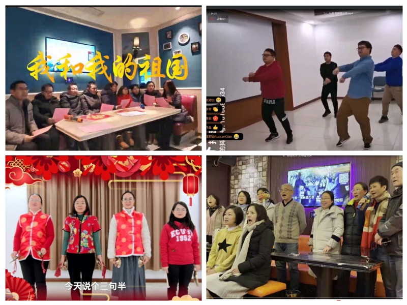随后,在学院工会委员张隽佶老师演唱的《我的中国心》的歌声中,联欢会正式进入节目表演环节。尽管是线上节目,但各工会小组、全体教师热情不减,在题材、内容、表演形式上下功夫,独唱、合唱、诗朗诵、相声、钢琴独奏、舞蹈等,节目的数量和质量创下学院历年联欢会之最。化学实验中心的吴思圆老师表演了钢琴独奏,通过网络向大家展示了《梦中的婚礼》和《水边的阿狄丽娜》等优美旋律;学院行政办4位老师带来的《化学三句半》和4位“重量级”教师表演的舞蹈《站在草原望北京》都获得无数点赞。“欢乐摇一摇”“疯狂数钞票”等在线小游戏更是创下参与人数破百的记录,部分教研室还组织教职工小规模集中观看线上活动,大家欢聚一堂,其乐融融。