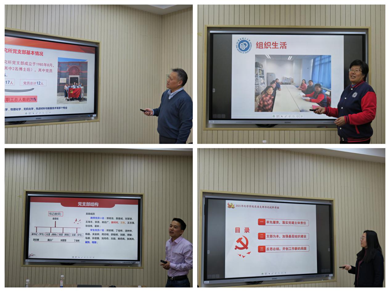 自2017年以来,化学学院党委连续5年在学生党支部和教师党支部中开展评比展示活动和述职工作,旨在促进各支部间工作经验的交流与分享,开拓组织生活的思路,以评促建,以评促改,不断提高党支部书记的政治觉悟和工作水平,以一流党建引领一流学科建设。