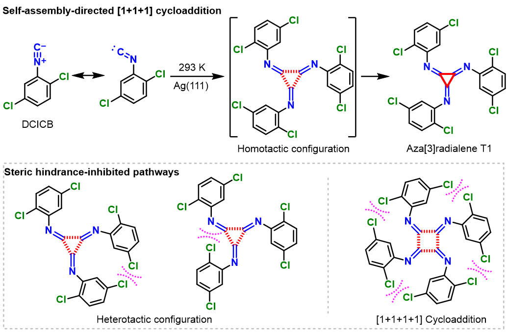 图1. 通过表面[1+1+1]环加成反应合成氮杂[3]轴烯