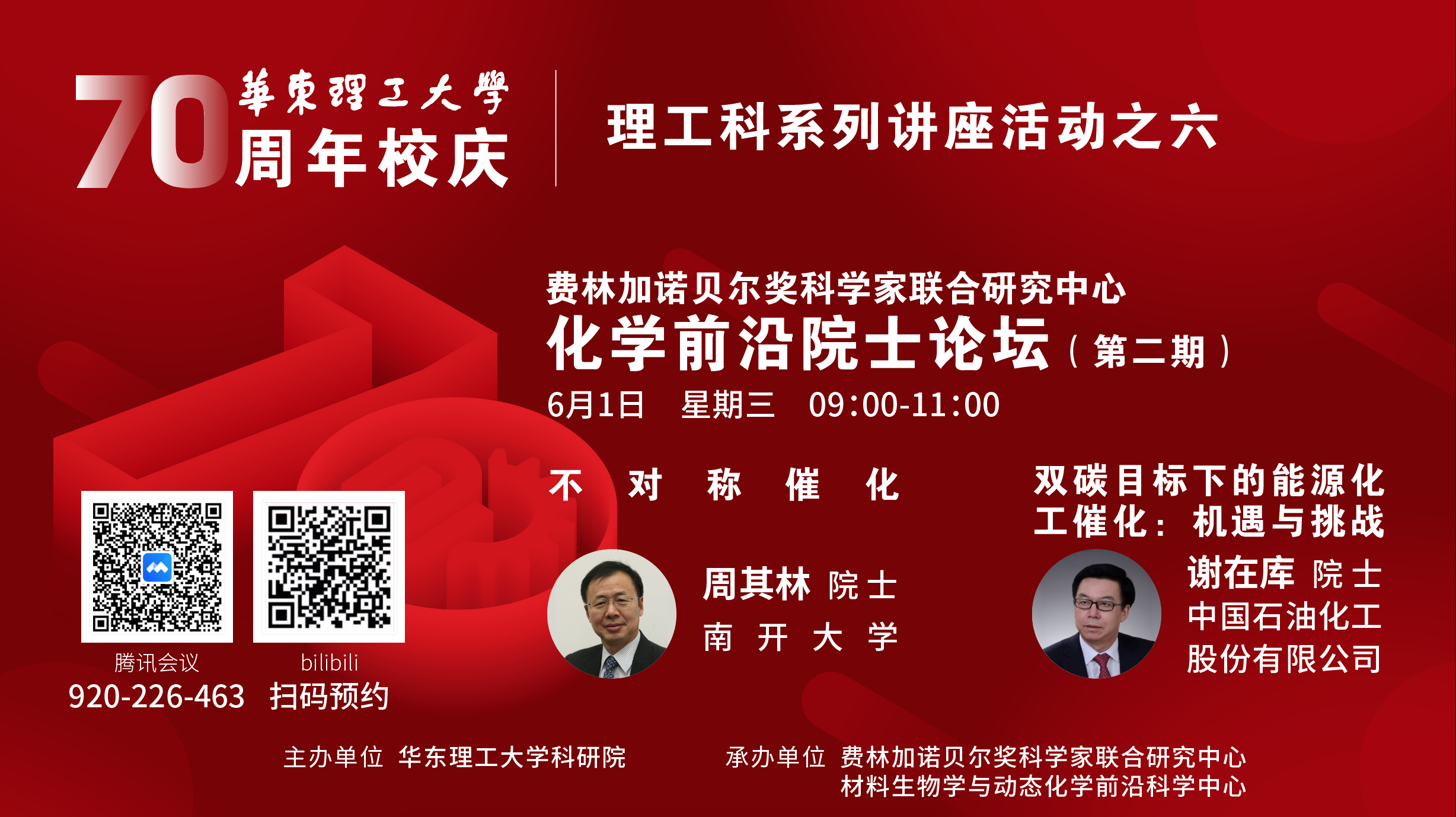 6月1日讲座:化学前沿院士论坛(第二期):周其林院士,谢在库院士
