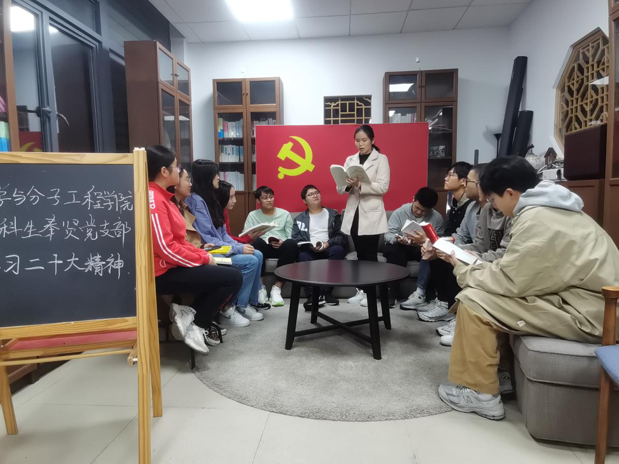 为深入学习宣传贯彻党的二十大精神,11月16日-18日,化学与分子工程学院本科生奉贤党支部通过专题党课、理论学习会和学习交流会等多种形式积极开展主题活动。