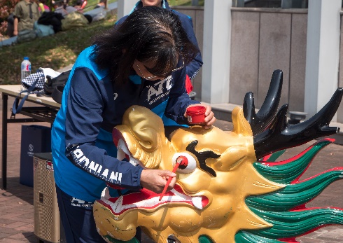 经化学学院工会精心策划、组织,有148名教职工报名参赛,另有啦啦队员15名,组成8支参赛队。上午9时,学院院长曲大辉教授讲话并宣布龙舟赛开幕。在大家的鼓掌声中,学院党委书记张文清教授和院长曲大辉教授为龙头点睛,预祝龙舟赛取得圆满成功,学院发展红红火火!