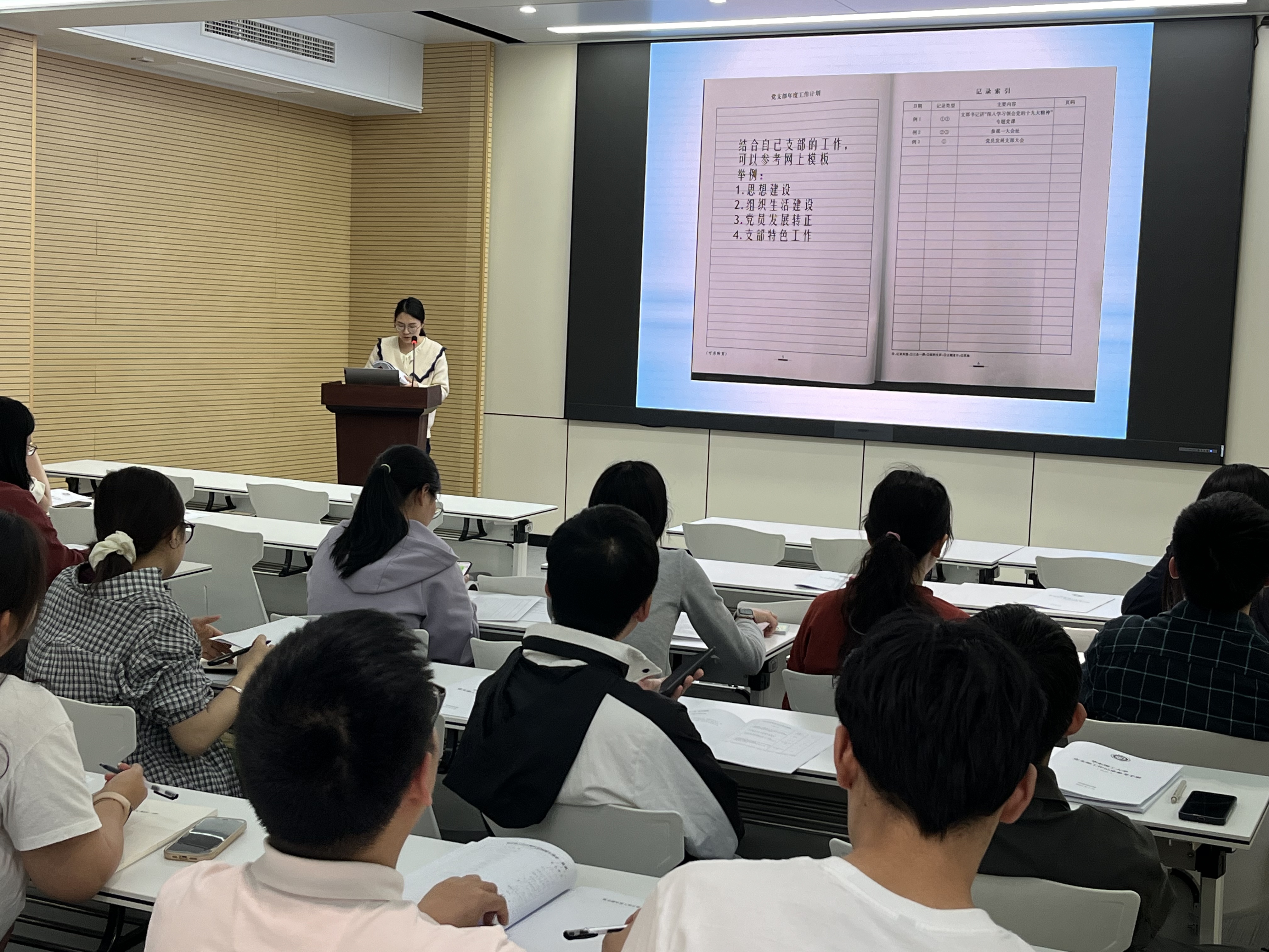 培训围绕基层党建工作实务展开,详细讲解了组织生活会的规范流程、注意事项及常见问题,重点对会议记录、民主评议等关键环节进行深入指导。会议明确要求,各党支部要严格落实“三会一课”、主题党日、组织生活会、民主评议党员等制度化工作,确保程序规范、成效显著。现场,学院为每位党支部书记发放了《365英国上市集团官网党支部工作记录参考手册(试行)》,为党支部组织生活提供标准化参考模板。