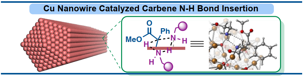 卡宾N-H键插入反应是构建C-N 键的重要策略,已被证实可在多种胺类底物中实现高产率与高选择性转化。然而,脂肪胺因具备强配位能力,易导致金属催化剂失活,这一关键问题严重限制了其应用。目前,解决该难题的方法主要依赖大位阻配体的引入或工程酶提供的多重结合环境,但这些策略在催化剂回收利用等方面存在一定局限。异相金属催化近年来逐渐在卡宾 N-H 键插入反应领域展现出一定的应用潜力,已在芳香胺的催化中取得良好效果,但针对脂肪胺的催化研究仍十分有限。