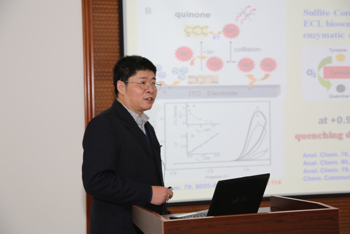 鞠熀先教授介绍了生命分析化学领域最新的研究进展,将信号放大与提取的方法应用于生命分析检测,其中包括生物传感,纳米生物技术以及分子诊断技术等。鞠熀先教授指出:科研创新需要有大胆尝试,勇于挑战的精神,这样才能抓住机会,做出成绩。同时,鞠熀先教授分享了南京大学生命分析化学国家重点实验室的申请与建设的心路历程,为科研团队的创新发展提出了宝贵的建议与心得。鞠熀先教授强调,创新团队的建设需要大家的团结一致与共同奋斗。报告会后,重点实验室学术骨干就报告内容进行了深入交流,各抒已见,畅所欲言,在热烈的讨论中为创新群体的建设碰撞出新思路、新火花。这次讲座对促进化学与分子工程学院的学科建设具有重要的指导价值。