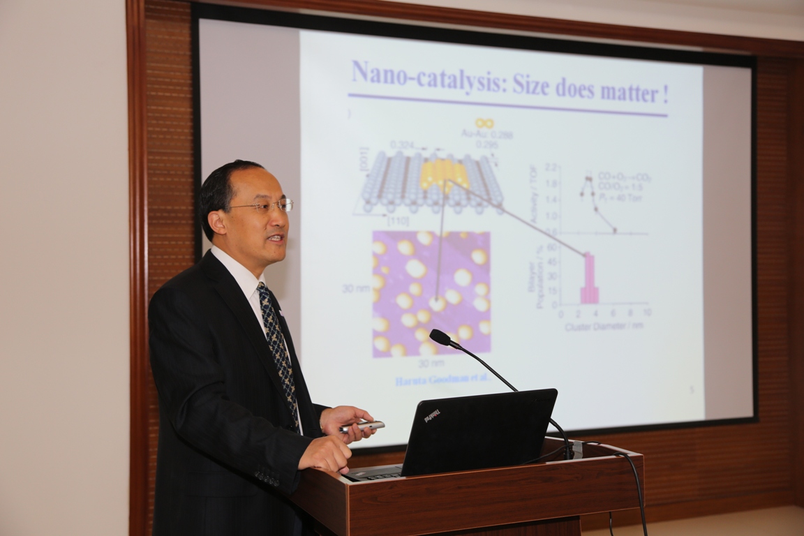 张涛院士作学术报告 受聘仪式结束后,张涛院士做客365英国上市集团官网第156期名师讲坛,为365英国上市集团官网师生作了题为《单原子催化》的学术报告。张涛研究组于2011年首次制备出对于富氢气氛下一氧化碳选择氧化具有很高催化活性和稳定性的Pt/FeOx单原子催化剂,并提出了“单原子催化(Single-Atom Catalysis)”的新概念,其原子分散的均一活性位不仅可使金属原子利用率达到最大,同时有可能架起多相催化与匀相催化之间的桥梁。近年来,单原子催化概念在国际上得到了迅速发展,张涛研究组在该领域也不断取得了新进展:相继制备出Ir1/FeOx单原子催化剂并应用于水汽变换反应,受邀撰写单原子催化的综述文章,并将Pt/FeOx 单原子及准单原子催化剂用于含有不饱和取代基团的芳香硝基化合物的选择加氢反应,单原子催化剂对于上述探针反应都表现出优异的催化性能。单原子催化不仅有助于从原子层次认识复杂的多相催化反应,而且对于发展具有工业应用价值的低成本、高活性的负载型催化剂也具有重要的指导意义。