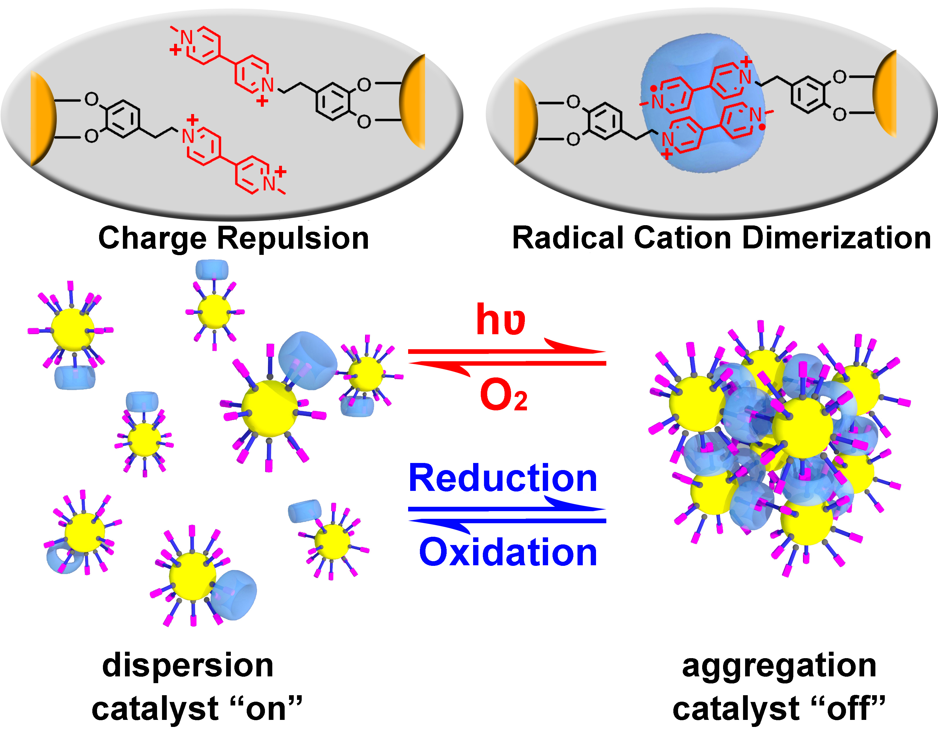 |         光控超分子自组装是超分子化学和材料化学领域的研究热点。曲大辉教授科研小组近期在基于主客体化学的光控二氧化钛纳米粒子自组装研究领域取得了突破性进展,《德国应用化学》近日在线报道了他们的“Dual-Mode Controlled Self-Assembly of TiO2 Nanoparticles Through a Cucurbit[8]uril-Enhanced Radical Cation Dimerization Interaction”研究(Angew. Chem. Int. Ed. 2015, DOI:10.1002/anie.201509071;文章链接:http://onlinelibrary.wiley.com/doi/10.1002/anie.201509071/abstract)。