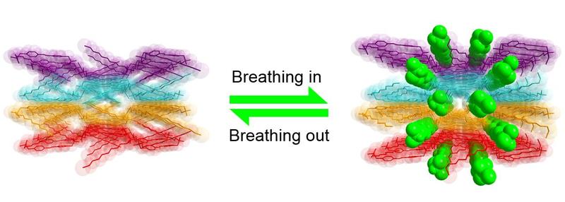 | 多孔材料的选择性吸附一直是材料化学领域的研究热点。在化学学院刘洪来教授、陈启斌教授的指导下,盛瑜玠等研究生在基于自组装构建功能性吸附材料领域取得了突破性进展,《德国应用化学》近日以“Guest-induced Breathing Effect in a Flexible Molecular Crystal”为题在线报道了他们的研究成果。