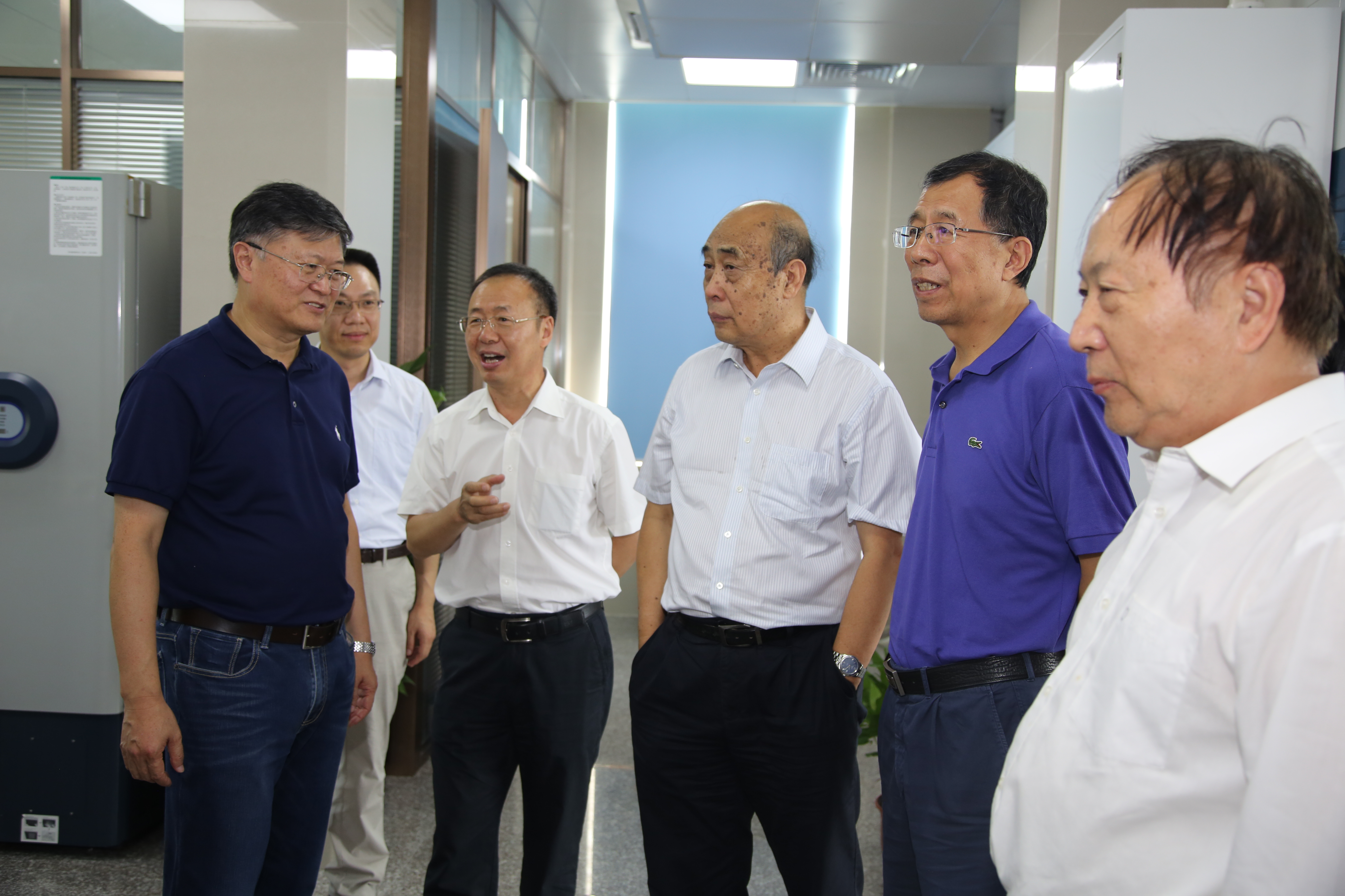 院士专家参观实验室 田禾院士向与会专家介绍了项目五年的总体进展情况。田禾指出,在各主管部门和领导的关心和支持下,在承担单位和项目研究人员的共同努力下,项目总体进展顺利。经过五年的辛勤工作,整个973团队在高水平论文的发表及临床应用等各个方面取得了丰硕的成果。另外,团队成员还成功申报国家基金委创新群体2个、国家杰青2人、优青5人。随后,项目四个课题分别对课题的定位及总体目标、计划及完成情况、重要研究进展与创新性、已取得的研究成果、人才培养与合作交流、存在的问题及今后研究思路等内容进行了汇报,并针对专家提问进行了答辩。 会议讨论阶段,项目责任专家张玉奎院士对项目开展五年来所取得的科研成果给予了充分的肯定,并对项目实施过程中的一些关键问题作了指导。专家组对课题工作状态和研究前景进行了认真的讨论评议,对项目所取得的进展给予了高度的评价并提出了许多宝贵的建议。专家们认为,该项目取得了一系列令人鼓舞的成果,并取得了该领域若干重大突破。最后,首席科学家田禾院士总结凝练了专家们提出的咨询意见,并反馈至各课题,然后对四个课题结题报告提出修改意见,强调此次结题验收是下一个重大课题研究的重要起点,我们的相关科学研究应当进一步推动生命健康领域的发展。 | ||