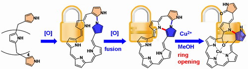 Porphyrins widely occur in natural systems such as chlorophyll and heme, which exhibit important photoelectronic functions. The development of novel macrocycles with specific functionality has long been an interesting research topic for chemists. In recent years, porphyrins and porphyrinoids have attracted considerable attention due to their versatile structures and properties. Among them, N-confused porphyrin is of particular interests in anion sensing, supermolecular assembly, stabilization of high-valent metals and luminescent materials in NIR region. In this work, cyclization of a hexapyrrane with two terminal N-confused pyrroles afforded a C-N linked hexaphyrin, which undergoes fusion and subsequent ring open reactions to afford two other novel porphyrinoids. The two hexaphyrins exhibit strong emissions around 900 nm, and thus may be applied as NIR luminescent materials. This work has important theoretical significance in the syntheses of functional macrocycles, especially porphyrin and porphyrinoids.