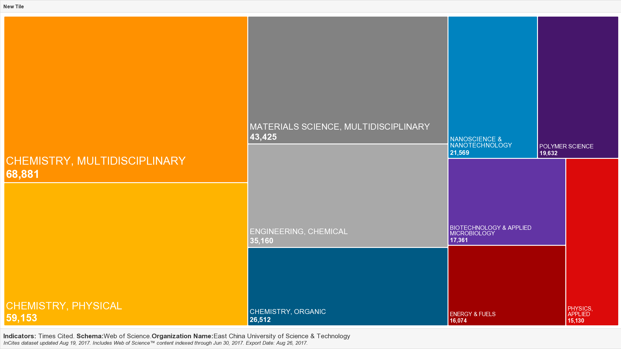 Indicators: Times Cited. Schema: Web of Science. Organization Name: East China University of Science & Technology InCites dataset updated Aug 19, 2017. Includes Web of Science content indexed through Jun 30,2017.Expot Date:Aug 26, 2017. |